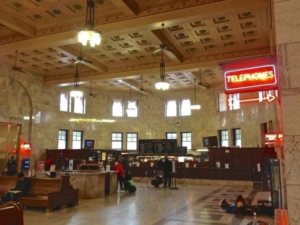 My one-night journey would depart from Union Station, in downtown Los Angeles. Opened in 1939, Union Station is a resplendent piece of architecture, with travertine marble walls, terra cotta floors and polished wood-beamed ceilings. It’s the largest train station west of the Mississippi.