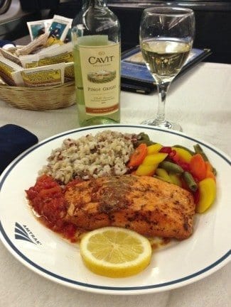 Atlantic salmon with rice pilaf and veggies. And wine. Again.
