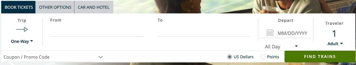 Looking at earlier photo above, you’ll see the option to select Book With Points. It’s right next to Find Trains.